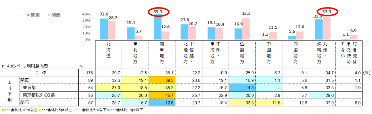【キャンペーン利用予定者の旅行先】