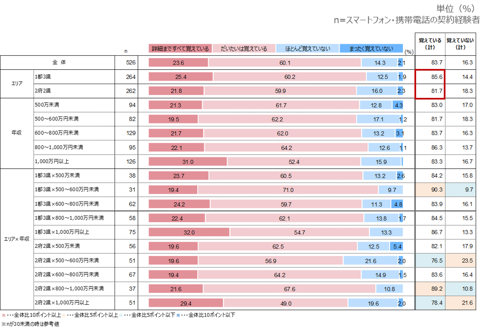 【スマートフォン・携帯電話】契約内容の記憶状況_エリア別