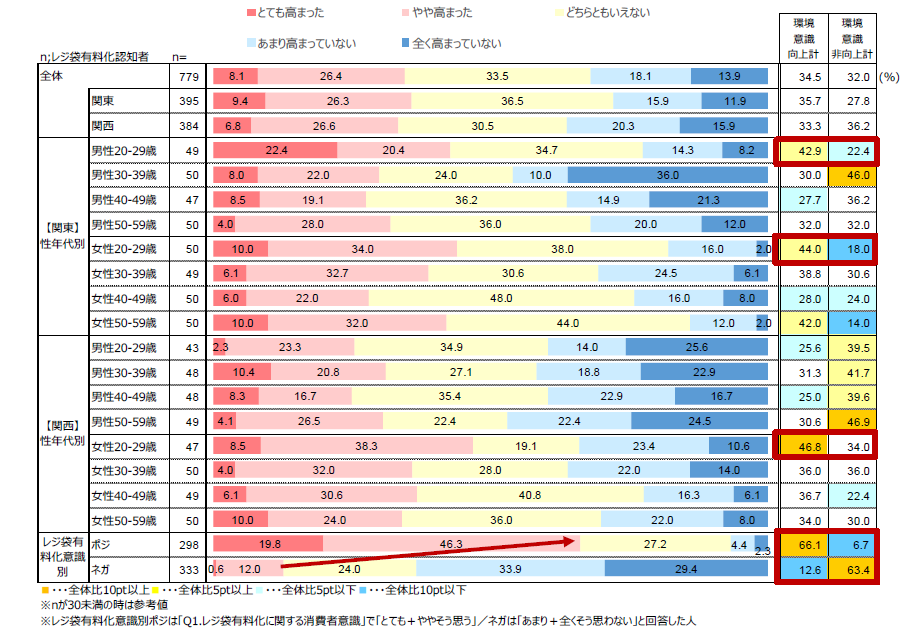 レジ袋有料化をポジティブにとらえている人は環境に対する意識も向上
