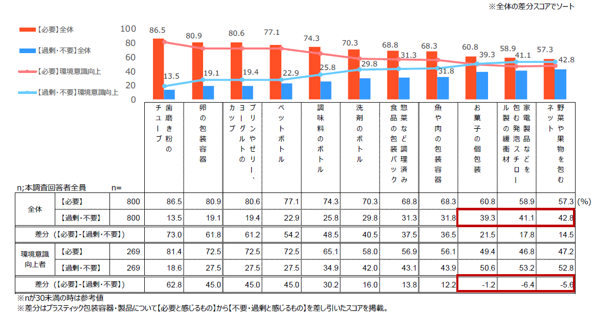 「野菜や果物を包むネット」「家電製品などの緩衝材」「お菓子の個包装」は過剰・不要