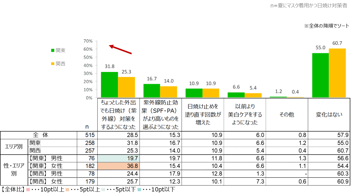 夏にマスクを着用することによって、3人に1人が「ちょっとした外出でも日焼け対策をするようになった」
