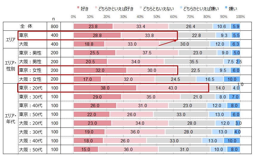また20代や女性を筆頭に、大阪より東京のほうが自炊好きが多い。