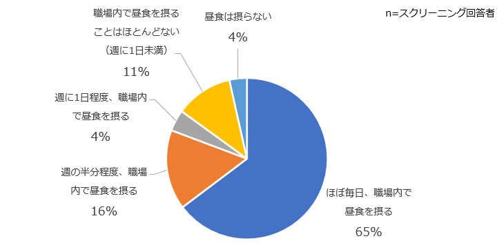 週の半分以上をデスク飯(職場内で摂る昼食)で済ませる人が約8割。毎日デスク飯の人は6割強を占める。