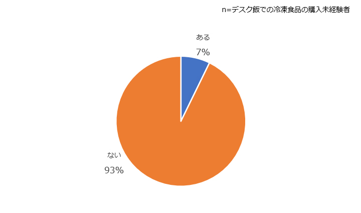 デスク飯として冷凍食品を購入したことがない人のうち、9割強がそもそも冷凍食品をメニューとして思い浮かべたことがない。