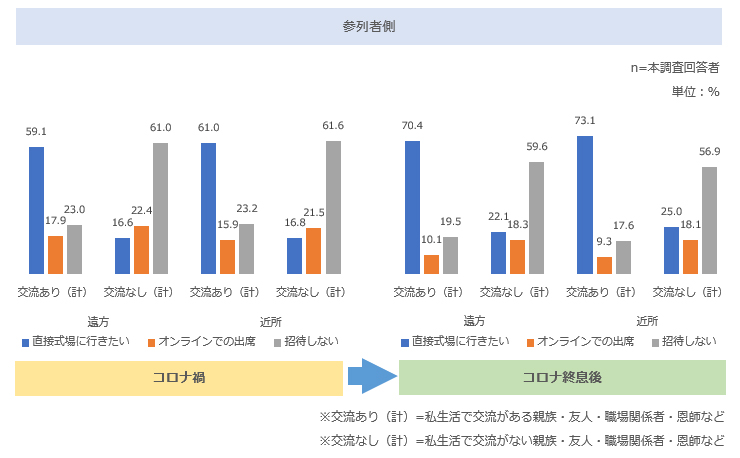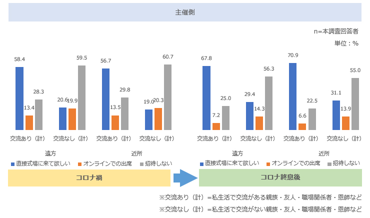 交流がある人に対しては、コロナ禍でも「直接式場に来て欲しい(行きたい)」が半数以上。
