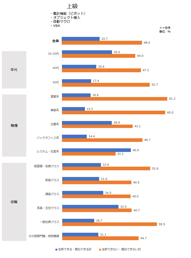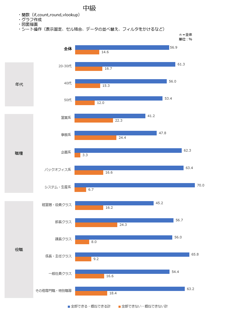 - Excelスキル、「係長・主任クラス」が最も高い傾向
