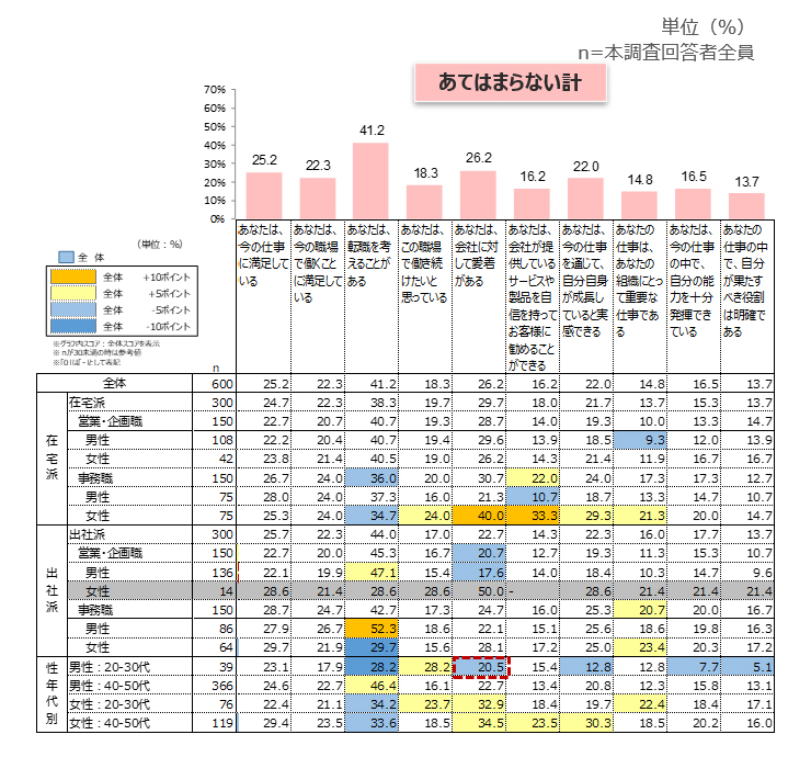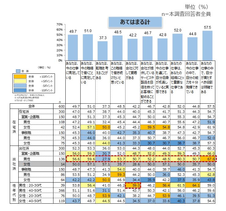 - 出社派の男性は会社や仕事への満足度が高い傾向