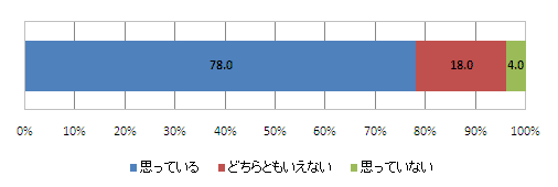 自身の育児参加意向の有無を尋ねたところ、「参加したいと思っている」という回答が78.0%を占め、意向はかなり多くの人が有している結果となった。