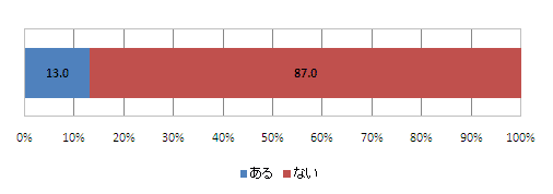 自身の育児休暇取得経験の有無を尋ねたところ、「ある」という回答が13.0%、一方「ない」という回答が87.0%であった。育児休暇の取得者は非常に低くなっている。