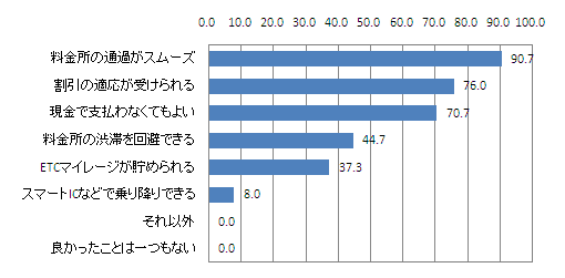 Q.あなたがETC車載器を装着して、良かったと思う点は、どのようなことですか。当てはまるものをすべてお知らせください。(複数選択可)