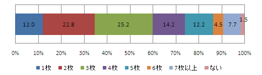 手鏡・コンパクト・クルマなどを除く、自宅内の鏡保有及び設置数を尋ねたところ、「3枚」が25.2%で最も高く、次いで「2枚」の22.8%、「4枚」の14.2%と続いた。TOP3の2~4枚で、全体の7割を占める。