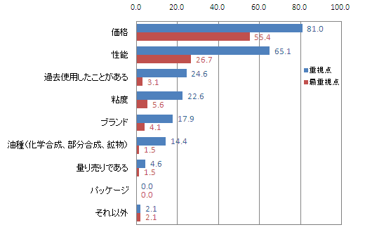 最重視点では、上位2つは、順位が変わらなかったが、3番手に「粘度」が挙がっている。