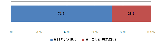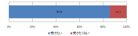 先進医療の受療意向を、概要を伝えた上で聞いたところ、「受けたい」が85.9%、「受けたくない」が14.1%という結果となった。