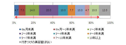 Q.あなたは、行きつけの美容室がありますか。ある場合は、どれくらい継続して利用していますか。(一つ選択)