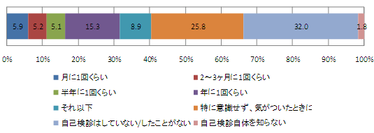 Q.あなたは、乳がんの自己検診をどれくらいの頻度でしていますか。(1つ選択)