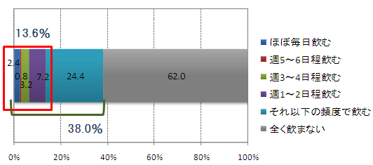 前問で「全く飲まない」以外の人が回答
