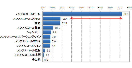次いで、トップに大差をつけて「カクテル」(18.4%)、「甘酒」(17.9%)が続く。