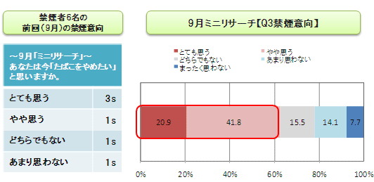 また、N=220sの9月時の禁煙意向は6割以上を占める。