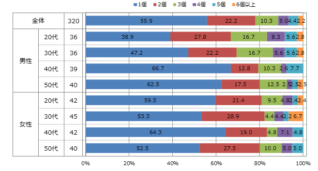 また、30代男性が半数以上と、若年層の男性は、他層に比べてアプリの利用数が多いことが分かった。手帳では1冊で管理できるものが、スマートフォンを利用することで、それぞれの目的に適ったアプリを利用していると言えそうだ。