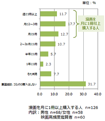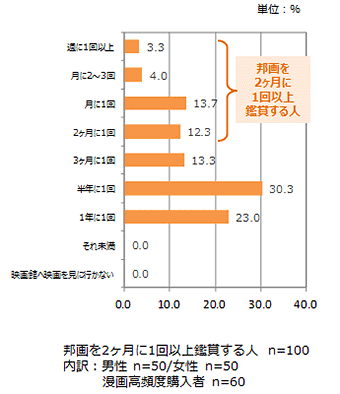 一方、邦画を2ヶ月に1回以上鑑賞する人も半数近くが購入したことがあると回答しており、漫画や映画に高頻度で触れている人には、“漫画→実写映画”のメディアミックスは効果的であると言えそうだ。