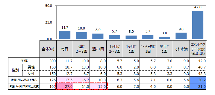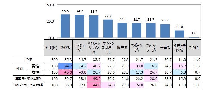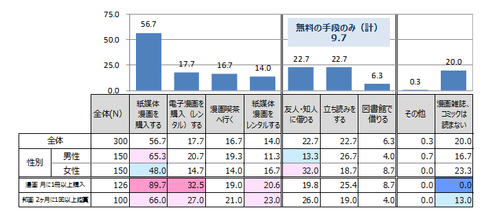 | 漫画雑誌・コミックの購入頻度 N=300 | ![]() |