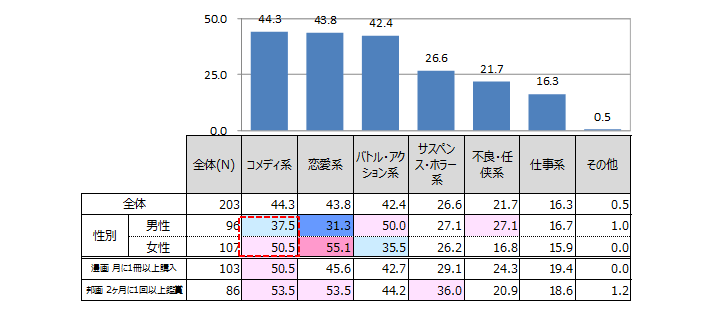 コメディ漫画は男性向け連載誌に多いが、実写映画化されると、女性の方が積極的に足を運ぶようだ。