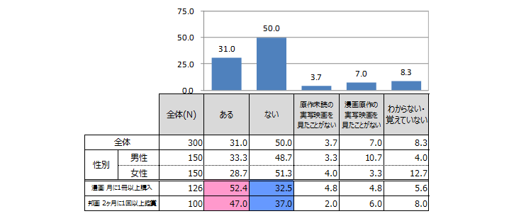 | 漫画が原作の実写映画認知 N=300 | ![]() |