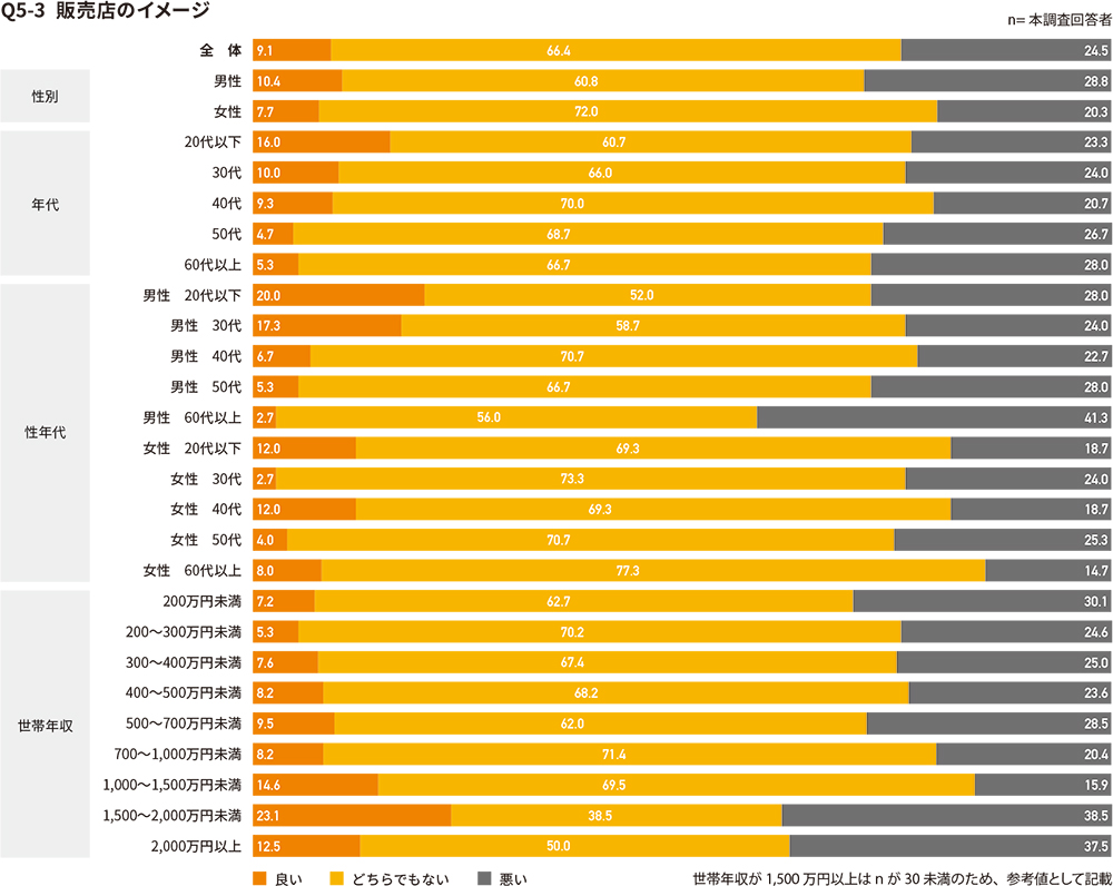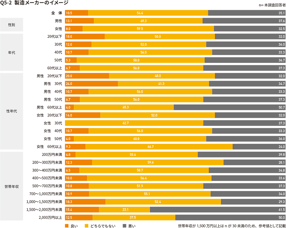 一方で、30代以下の男性からは好意的に捉える割合が比較的高くみられる。また、60代男性からイメージが悪くなるのに対し、同じく60代女性は「どちらでもない」の回答割合が高く、「悪い」と答える割合が低かった。