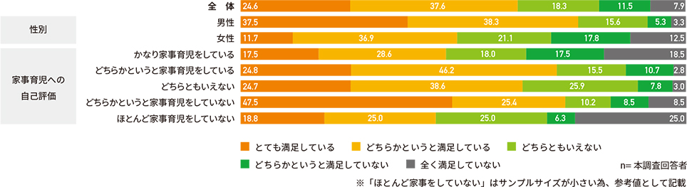 - 男性の4分の3が配偶者の家事育児に満足、女性で満足している人は半数に満たない