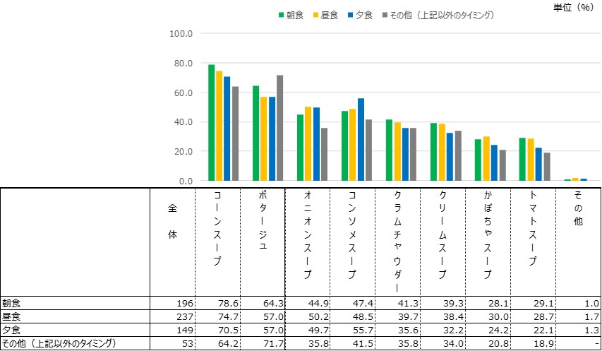 一方で、その他(上記以外のタイミング)では『ポタージュ』が1位となった。