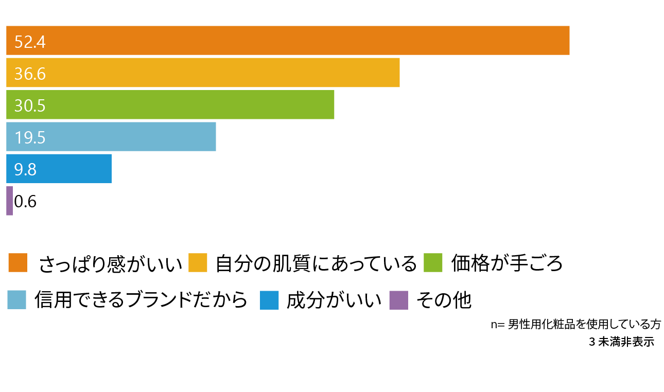 - 女性があえて男性用化粧品を使用する理由は「さっぱり感」