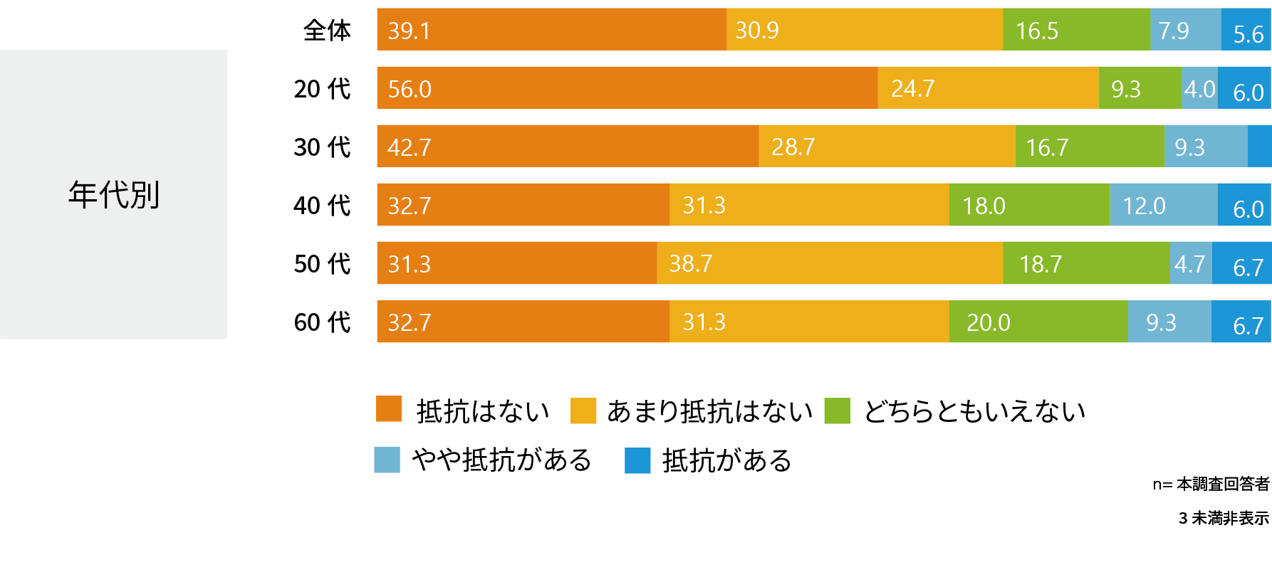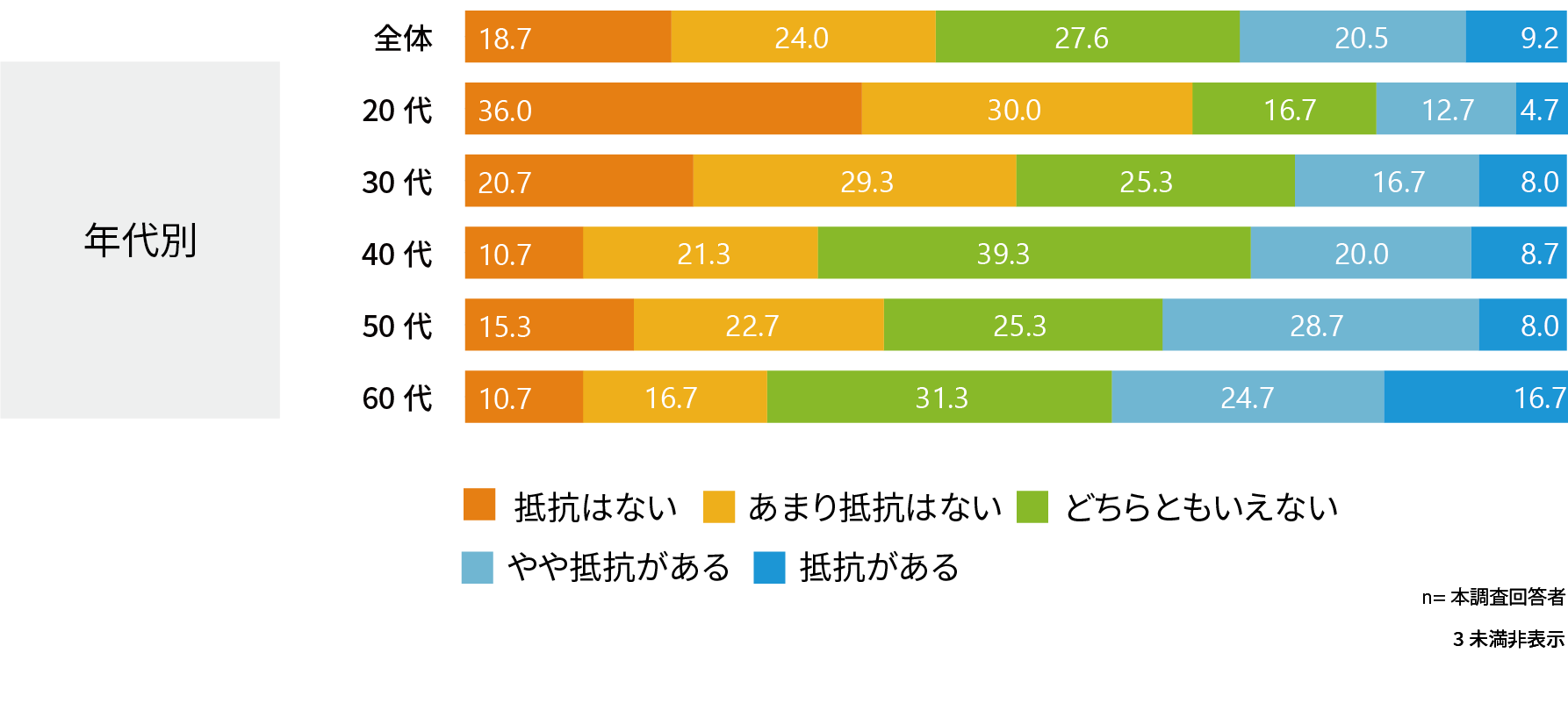 どの年代でも6割以上が「抵抗はない」「あまり抵抗はない」と回答。