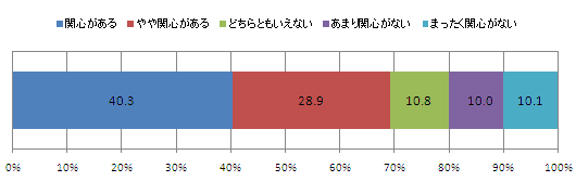 現在ダイエットに関心があるかたずねたところ、「関心がある」が40.3%で最も多く、「やや関心がある」と合わせて約7割となった。