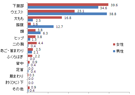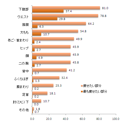 いちばん痩せたいのは下腹部・ウエスト、女性は脚も