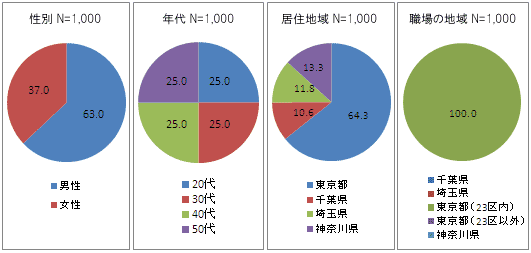 | 対象者条件 | 1都3県在住の20歳~59歳男女で、職場が東京都23区内にあるビジネスパーソン | ||||||||||||