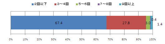 東京メトロを週に1回以上利用すると回答した568人に、1日に平均で何回くらい利用するかを聞いた(一度の乗り降りで1回、往復で2回)。最も多かったのは「2回以下」で67.4%、次いで「3~4回」が27.8%となった。5回以上利用する人も4.8%いた。