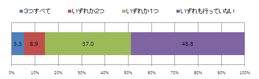 3つのうちいずれか1つ以上の時期に旅行をした人は、51.2%と全体の約半数。また、すべての時期で行ったと回答した人も5.3%いた。