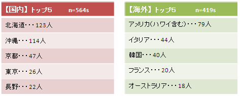 国内、海外それぞれで回答の多かった都道府県と国名は以下の通り。