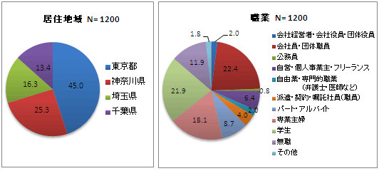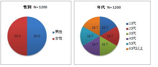 | 対象者条件 | 1都3県在住、高校生以上の男女1200人 | ||||||||||||||||||||||||||||||||