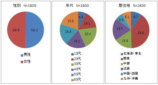 | 割付 | 【性別】 男性:50.1%、女性:49.9% 【年代】 10代:6.8%、20代:16.1%、30代:20.4%、40代:18.2%、50代:18.8%、60代:19.8% |