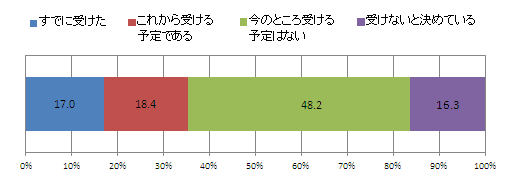 「今のところ受ける予定はない」が最も多く48.2%。「すでに受けた」人は17.0%、「これから受ける予定である」人は18.4%で、アンケートを行った11月下旬時点では、およそ3人に1人が予防接種を受けるという状況に。