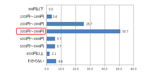 予防接種を全額自己負担で受けた(または受ける予定である)と回答した人に費用を聞いたところ、最も多かったのは「3000円~3999円」で50.7%、次が「2000円~2999円」で25.7%。1回につき3000円前後がおよその平均的な費用と考えられる。