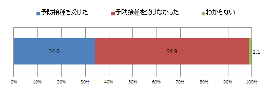 今度は昨シーズンの予防接種について聞いたところ、「受けた」という人は34.0%で、およそ3人に1人。今シーズン「すでに受けた」「受ける予定」と回答した人の合計(35.4%)と、ほぼ同じ割合だった。