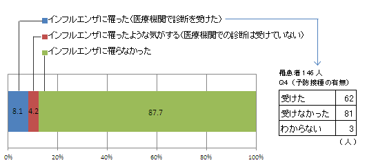 昨シーズン、インフルエンザに感染した人のうち約4割は「予防接種を受けた」と回答