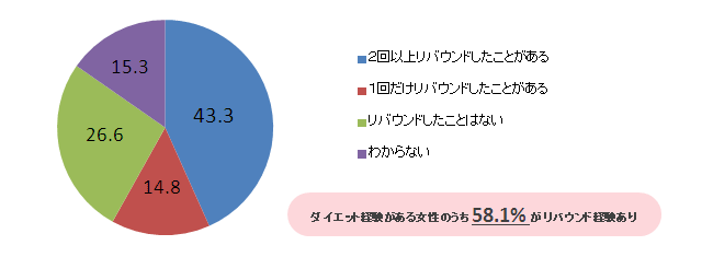 一方「リバウンドしたことはない」というダイエット成功者は26.6%で、約4人に1人。また、「わからない」と答えた女性も15.3%いた。