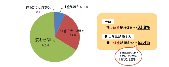 秋に食欲が「変わらない」と答えた人では、15.7%が「体重が増える」と回答した。