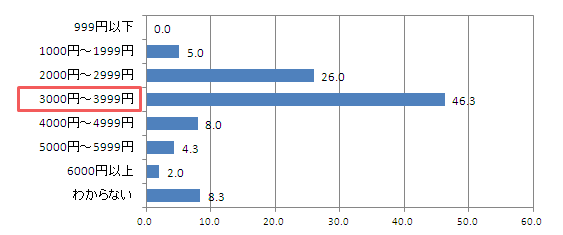 予防接種を全額自己負担で受けた(または受ける予定である)と回答した人に費用を聞いたところ、最も多かったのは「3000円~3999円」で46.3%、次が「2000円~2999円」で26.0%。前回調査と同様、1回につき3000円前後が平均的な費用と考えられる。