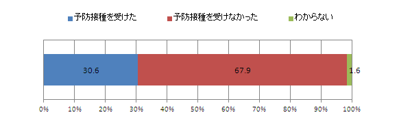 今度は昨シーズン(2011年-2012年にかけて)の予防接種について聞いたところ、「受けた」という人は30.6%。「受けなかった」という人は67.9%で、前回調査と同様受けなかった人の方が多い結果に。