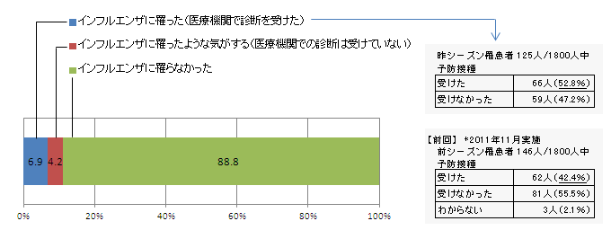 昨シーズン、インフルエンザに感染した人のうち約4割は「予防接種を受けた」と回答