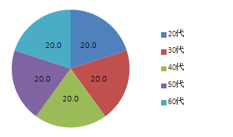| 割付 | 【年代】 20代:20.0%、30代:20.0%、40代:20.0%、50代:%、60代:20.0% |